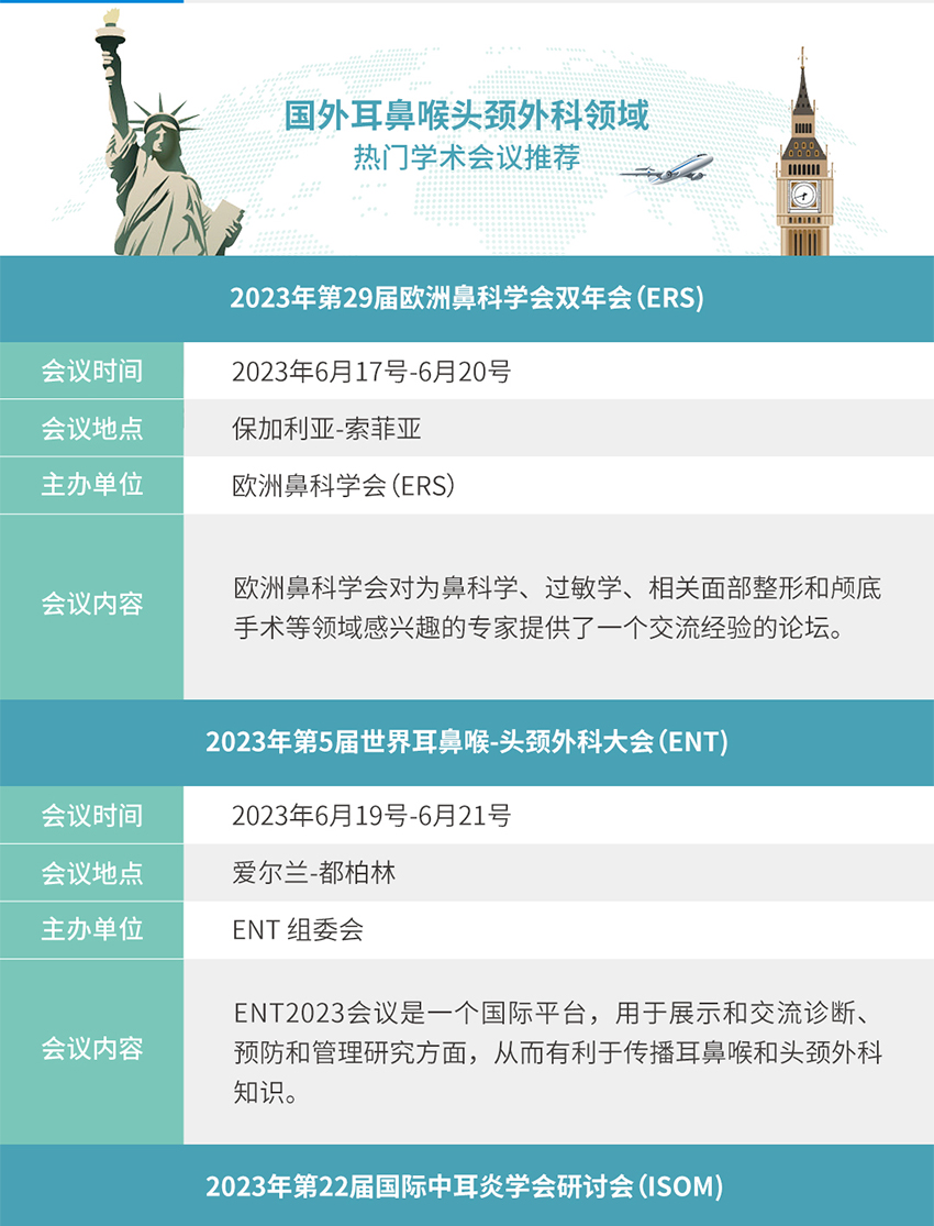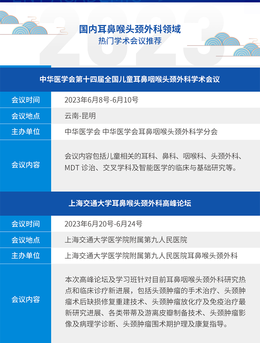 會(huì)議公告丨2023年國內(nèi)外耳鼻喉頭頸外科熱門學(xué)術(shù)會(huì)議推薦