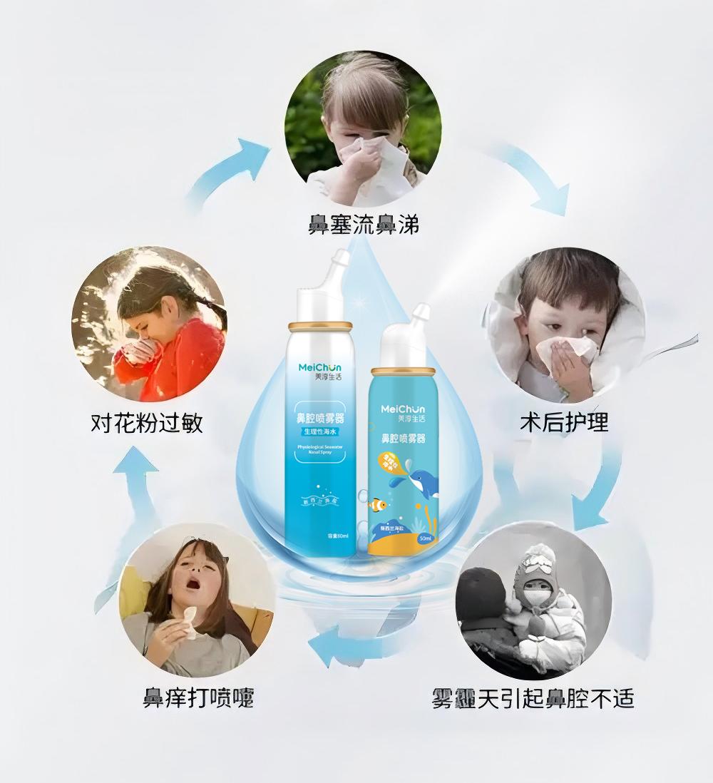 生理性海水鼻腔噴霧器選用新西蘭海鹽,溫和不嗆鼻,能有效清潔鼻腔、緩解鼻塞、減少過(guò)敏原。用于鼻腔疾病患者的鼻腔清洗,也用于鼻炎手術(shù)后及化療后的鼻腔清洗。