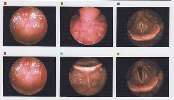 喉鏡檢查見會厭囊腫呈半球型,蒂部廣,表面光滑,顯灰白、淺黃或淡紅色。