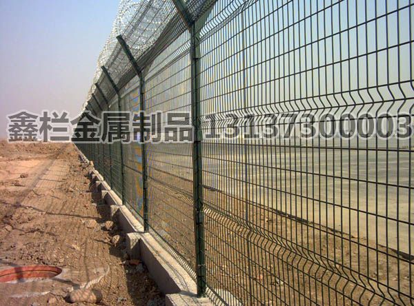 機(jī)場護(hù)欄網(wǎng)又稱作“Y型安全防御護(hù)網(wǎng)”、機(jī)場圍欄網(wǎng)、機(jī)場隔離柵、機(jī)場隔離網(wǎng),是安全防盜連接件和熱鍍鋅刀片刺繩組成是強(qiáng)度和安全防御性級(jí)別很高的護(hù)欄網(wǎng)產(chǎn)品。近年來,機(jī)場圍欄網(wǎng)被廣泛應(yīng)用在機(jī)場,軍事基地等高安全場所。(如果在機(jī)場護(hù)欄網(wǎng)頂部加裝刀片刺絲、刀片刺繩后又很好的增強(qiáng)了安全防護(hù)性能。)